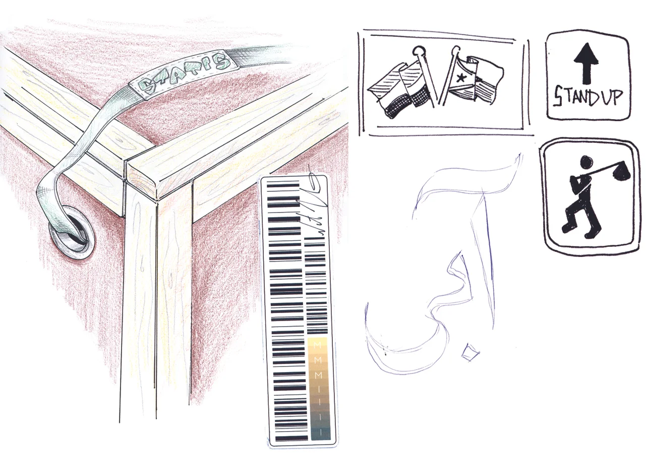 Construction speaks about traveling crates which relates to the movement of the refugees from one home to another. It also allows for a use of graphics within the panels. Participants engage their thoughts and expectations in a graphic workshop that produces graphic stickers to be placed on the furniture pieces they create.